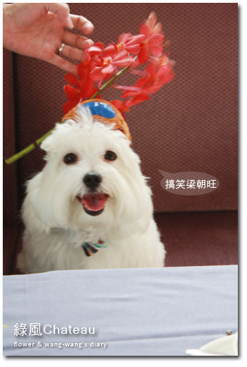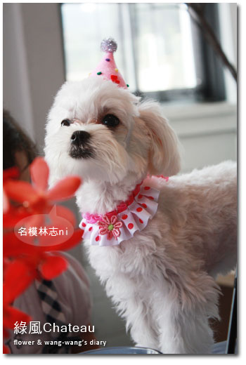 ↓ 頭上戴的是麻糬麻做的壽星帽, 有點繄的鬆緊帶, 把 UNI 的眼睛變鳳眼了