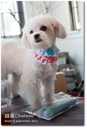 ↓ 好可愛的小領巾 (UNO 在歐歐睏, 借他藍色的來戴)