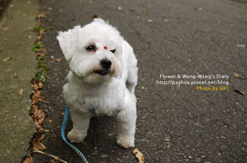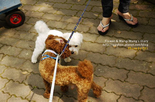跟小貴賓交流中...一直互轉圈圈...牽繩都打結了
