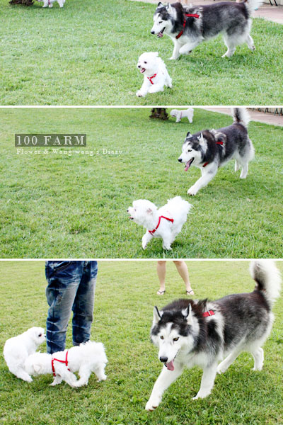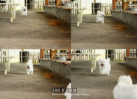 在黃胖努力帶領之下, 旺旺也跑了..好感動~但他耳朵還是飛不起來...