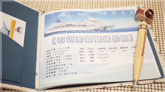 在封面裡做了一個口袋, 放了列印出的麗星郵輪介紹及說明, 口袋的尺寸有比較合, 避免紙張掉出來